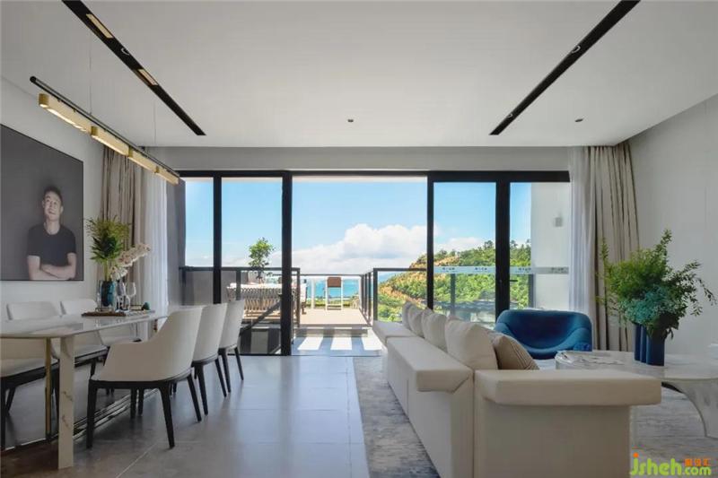 天真爛漫,童趣橫生。于藍(lán)白之中,大海作伴。置身于海洋童話城堡夢(mèng)境之中,攬?chǎng)L入夢(mèng),擁星成眠。大片落地窗,引領(lǐng)著室內(nèi)的光線,將無敵的海景納入房中。
