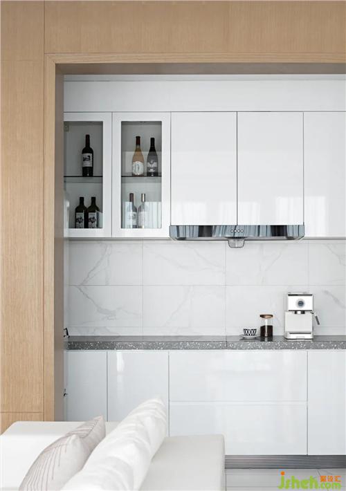 全景式落地玻璃門,將屋外的海景也融為設(shè)計(jì)的一部分。于室內(nèi)一隅閑適之處,停半晌,整花鈿。杯盤皆備,淺酌慢飲,靜享寧?kù)o悠閑時(shí)光。