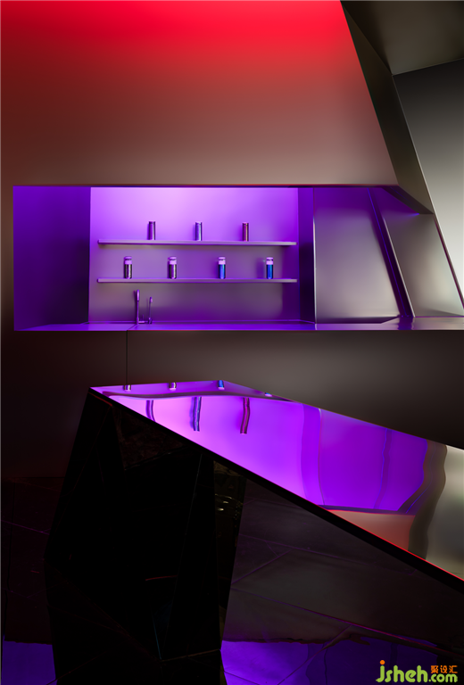 空間原始場地位于來福士商場主動線位置,和場地形成矩形看面。基于重慶經(jīng)緯縱橫的立體城市結構與空間的新商業(yè)需求,展廳設計師意圖打造一個富于吸引力的場景化空間,在CBD高速翻轉的場景里營造一個多維舞臺,金屬鈦的前世今生在這里拉開大幕。