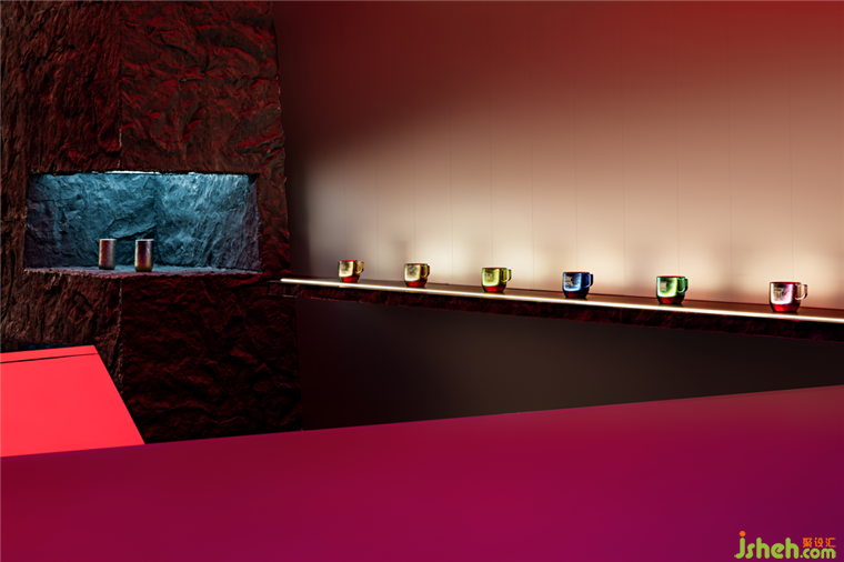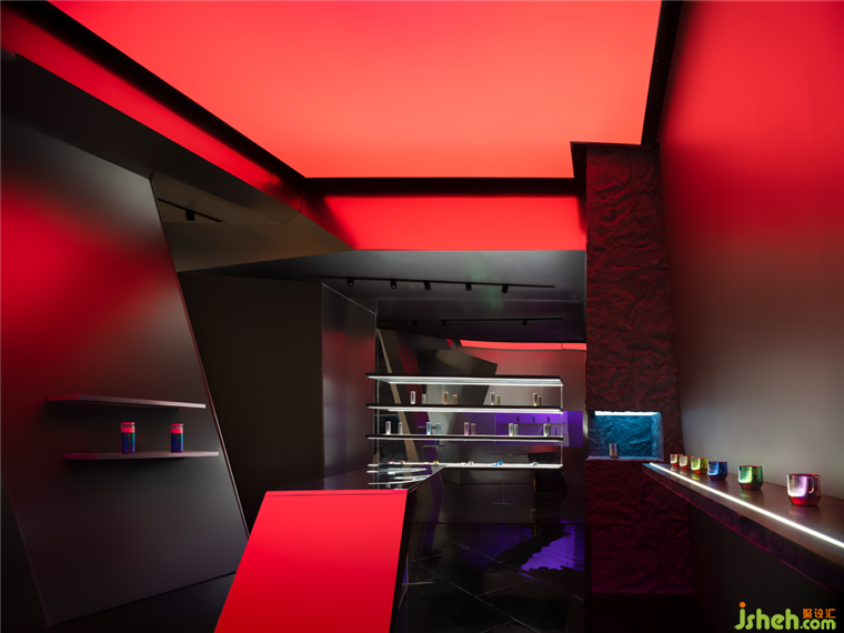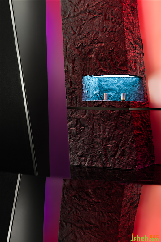 關(guān)于礦洞內(nèi)在形式前期進(jìn)行了多輪實驗,最終決定在造型上強(qiáng)化鈦的金屬剛硬屬性。頓挫曲折,大斧劈皴,將礦洞幾何化,塊面解構(gòu)切分。此法處理不僅來源于設(shè)計直覺,亦有東西方藝術(shù)共性的來源。外部看這個由傾斜的造型和物體所重組的空間宇宙,展廳設(shè)計造型隨機(jī)而夸張,模糊了常規(guī)頂立面的關(guān)系。但其尺度是基于功能準(zhǔn)確而精密的。