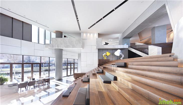 建筑首層選用大面積的玻璃幕墻,
