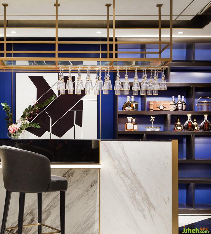 主題定義為了不起的蓋茨比,在電影海報中呈現(xiàn)ArtDeco(藝術(shù)裝飾)的符號,整個空間的室內(nèi)設(shè)計的靈感源于對ArtDeco的崇高致敬,也在強調(diào)著對藝術(shù)敬意和熱愛。因此除了在空間設(shè)計發(fā)揮容納、展示、使用方便的優(yōu)勢,也著重在陳列上的藝術(shù)性。如客廳中的沙發(fā)我們也采用了時尚頂級意大利品牌Baxter,其以生產(chǎn)如藝術(shù)品般值得擁有和收藏的家具產(chǎn)品而著稱。長款沙發(fā)名為Cherster Moon擁有特別調(diào)製深藍色,顯得高貴優(yōu)雅,提升整個客廳的氣質(zhì)。