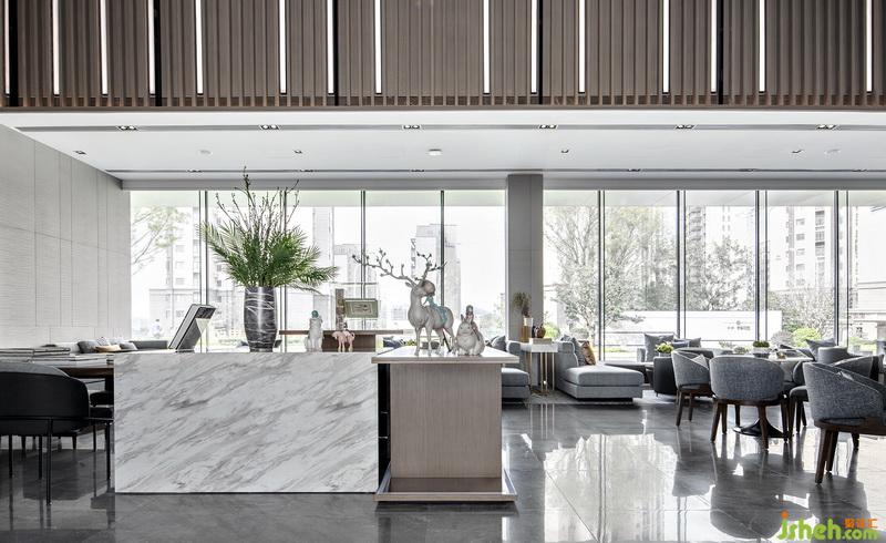 “我們專門選取了與建筑外觀的沖孔形態(tài)相呼應的燈飾,它是建筑形態(tài)在室內(nèi)空間中得以延伸,我們想體現(xiàn)出濃重的儀式感?!痹O計師說。