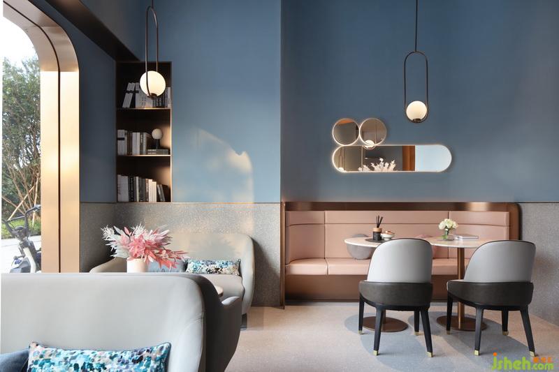 面積較小的空間中如果把以往銷售中心的全部功能都放進去,會造成一定程度擁擠,這個時候不妨以主題式、場景化的手法讓空間活泛起來,所以最后選擇將它打造成一家充滿時尚休閑氣息的輕餐空間。即使在面積相對小巧,室內設計師也會用多樣化的技術手段和設計語言,創(chuàng)造各種細節(jié)來豐富整體的空間體驗,減少過分嚴肅的氛圍,讓訪客自行發(fā)掘探尋有趣好玩的地方。