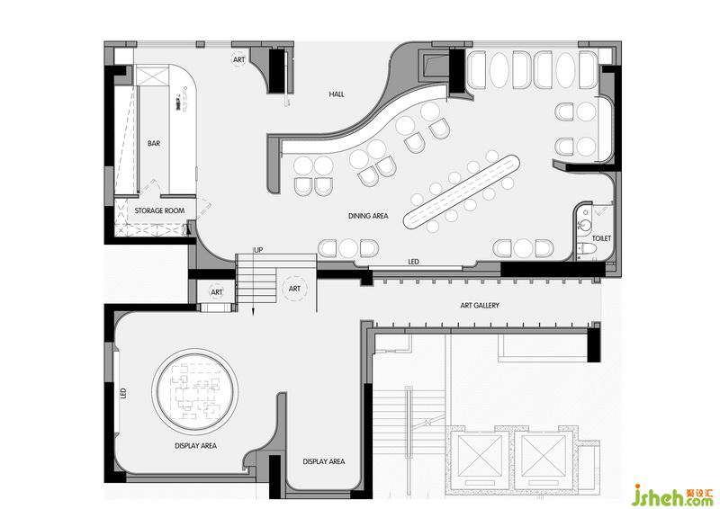可以說,在功能布局上,設計師做了大膽的取舍:考慮到項目的面積比較小巧,我們在保證銷售功能的基礎上只保留了部分的營銷板塊,盡可能地把空間的細節(jié)美舒展開來。