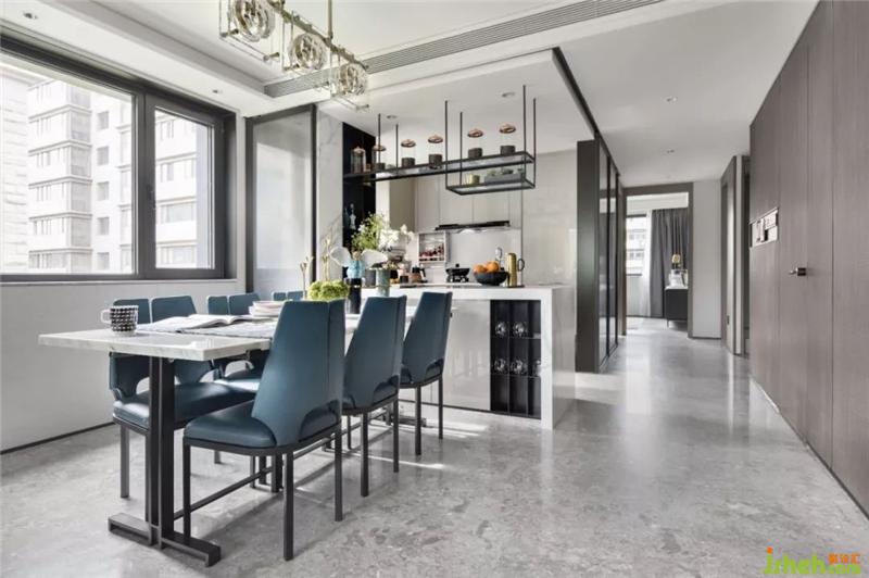空間最顯著的特征,即是主臥-餐廚空間的動線相當(dāng)流暢、直接,十分便捷,節(jié)省大量的時間,不但讓主人可以多睡30分鐘養(yǎng)精蓄銳,也能輕松實現(xiàn)一頓簡便的早餐,為男女主人奉上早上難得的二人親密時光。樣板房設(shè)計