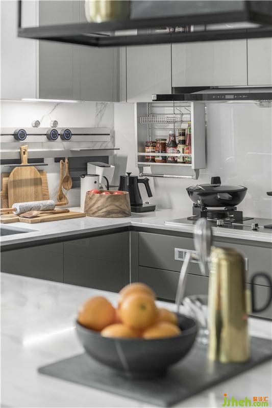 餐廚空間之所以采用開放式設計,源于我們對生活場景的觀察。分享美食的時候,人與人之間的距離被拉近了。在家庭內(nèi)部,成員之間的餐桌邊交流互動也更為親密和溫馨。餐廚空間也因此能超越客廳,成為整個家庭最重要交流場所,以及美好家居生活的中心所在。