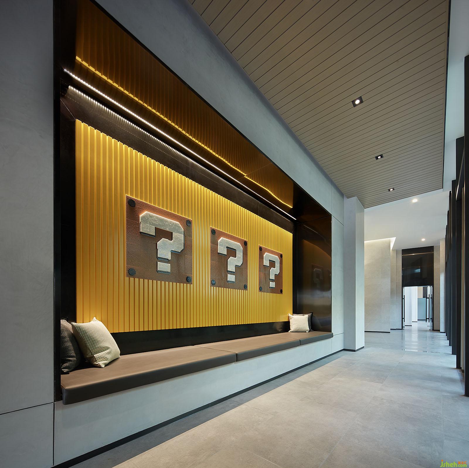 裝點(diǎn)以有趣的藝術(shù)元素,使社交會(huì)晤不再單調(diào),它呈半開放的形態(tài),融入整體的空間風(fēng)格中,一體兩面地分別呼應(yīng)活潑、年輕的主題。