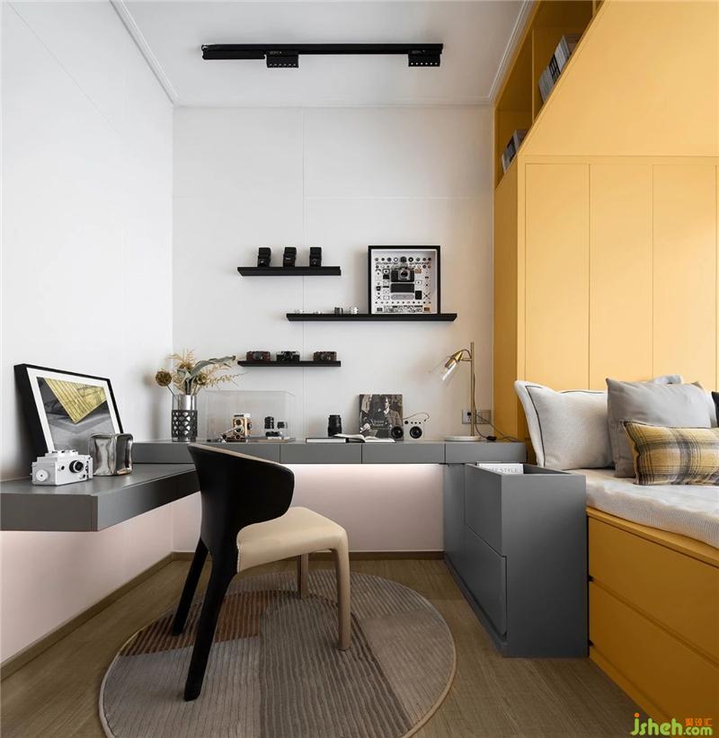 合理的空間布局便于日常收納,滿足全齡段的居住收納之余,還以明亮的顏色形成強裝飾性,彰顯出樂也融融、欣欣向榮的居住氛圍。
