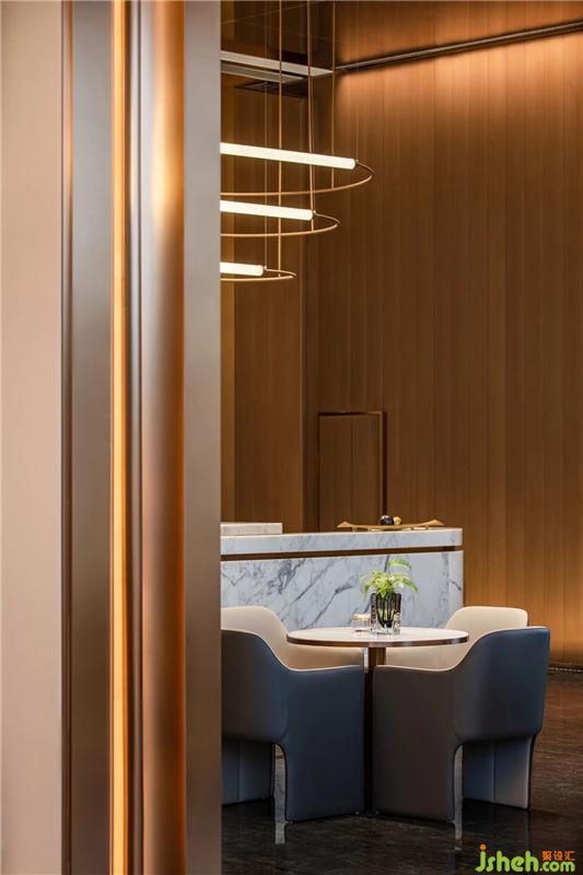 夕陽漸沉,余暉盡染,洽談區(qū)光線感進(jìn)入一天中漸漸柔和的階段,人們也邁入閑適的休閑時光,偃息了張揚(yáng)的光芒,亮起了點點燈盞。