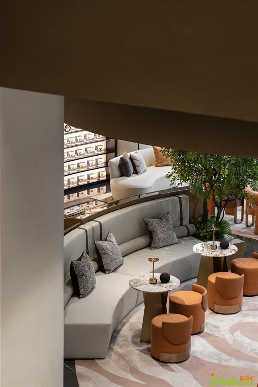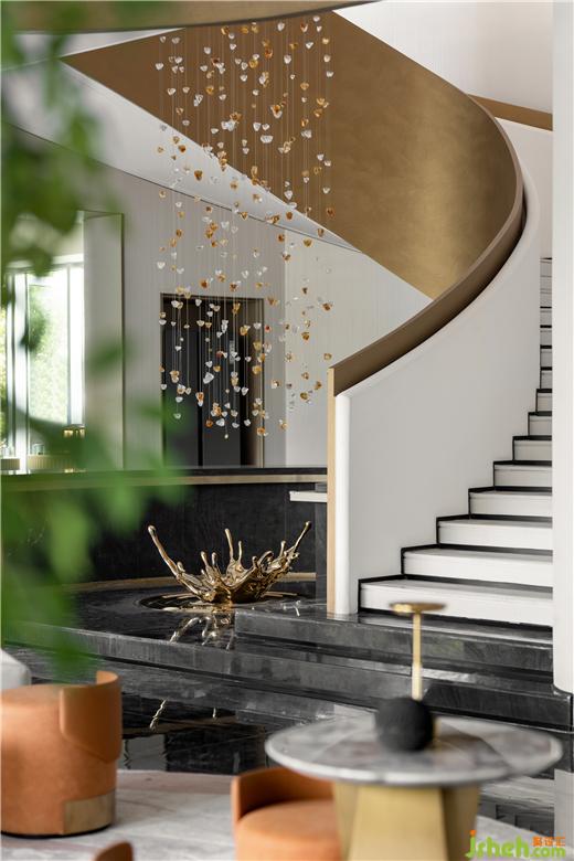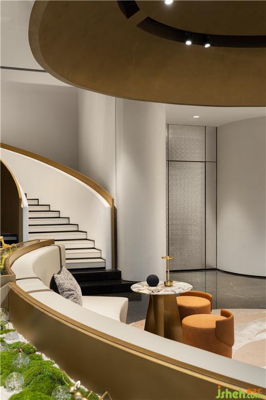 江西售樓處設(shè)計以優(yōu)雅的旋轉(zhuǎn)弧線環(huán)繞藝術(shù)品,自然的雨水落入湖中泛起波瀾漣漪,點上一杯茶或咖啡,靜坐片刻,仿佛有淅淅瀝瀝的細(xì)雨在耳邊響起。