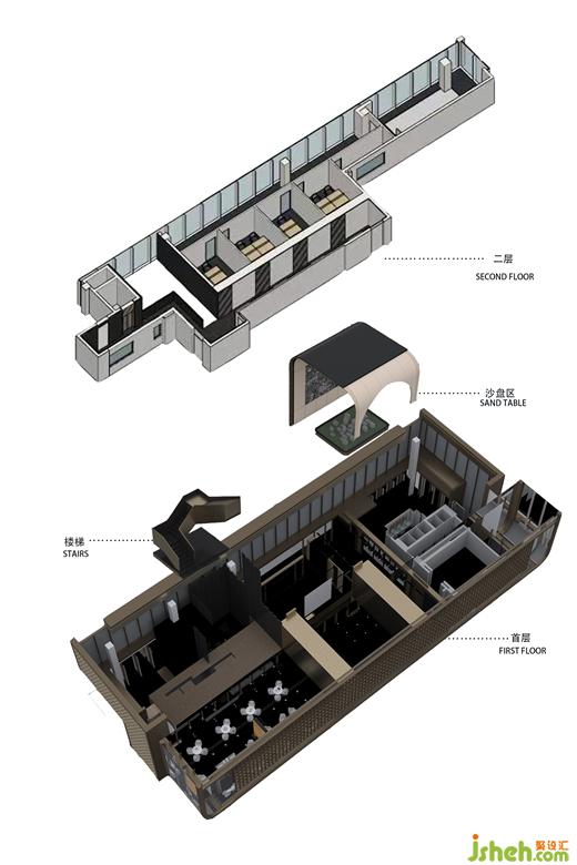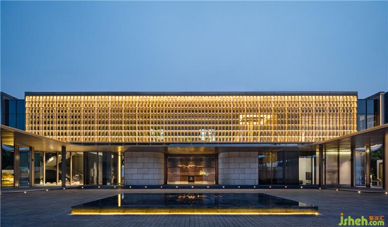 SNP圍繞《千里江山圖》展開概念設(shè)計(jì),常州售樓處設(shè)計(jì)提煉山水形態(tài)融入空間,墻面回應(yīng)建筑外型的架構(gòu)體塊。