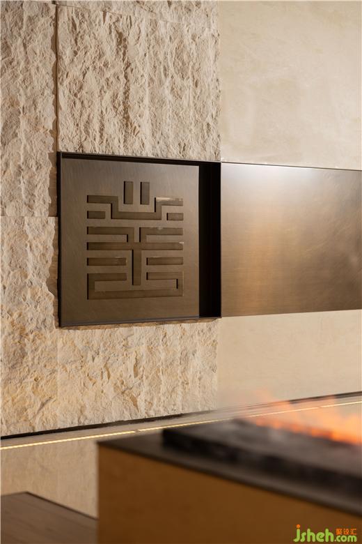 圖騰,是原始宗教的最初形式。在印第安文化中,每個部落都有獨一無二的圖騰象征,廣州疊墅設計師結(jié)合中國漢字文化,以“善”字凝練出圖騰形狀刻入墻體,詮釋一份善良忠誠的家族精神。