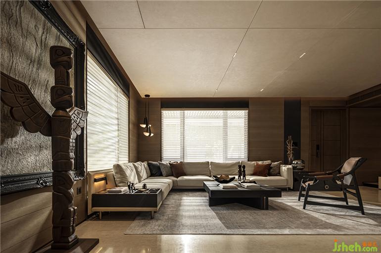 圖騰柱以鷹的形象代表勇敢,傳遞遠古自然的神秘力量,廣州疊墅設計在原始風格的工藝品下感受野性的魅力。