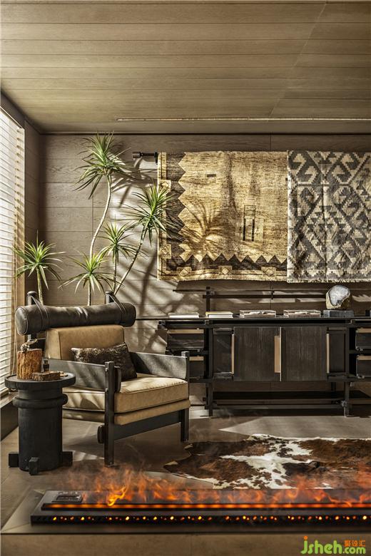 篝火之上,黃銅與棉麻的質(zhì)感塑造樸實的原始風情,廣州疊墅設計部落文明的象征烙印在空間的各處角落。