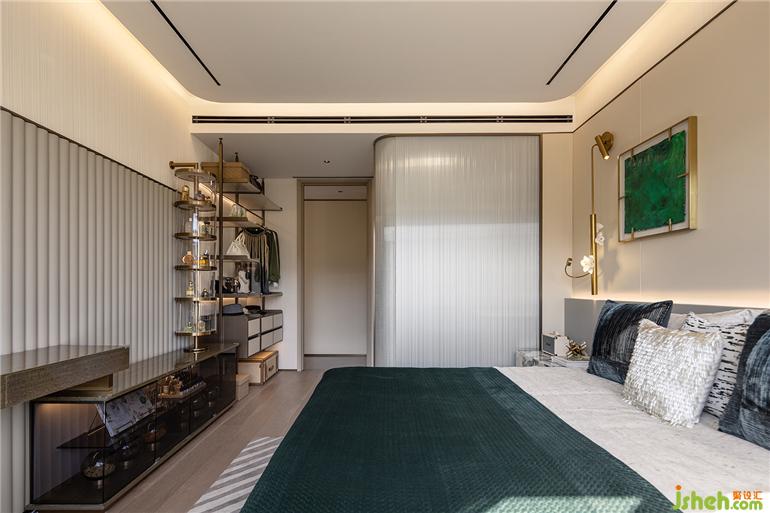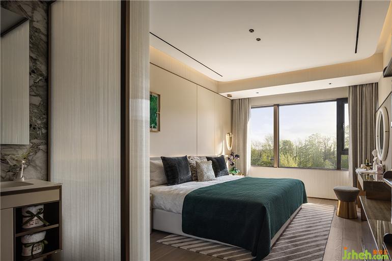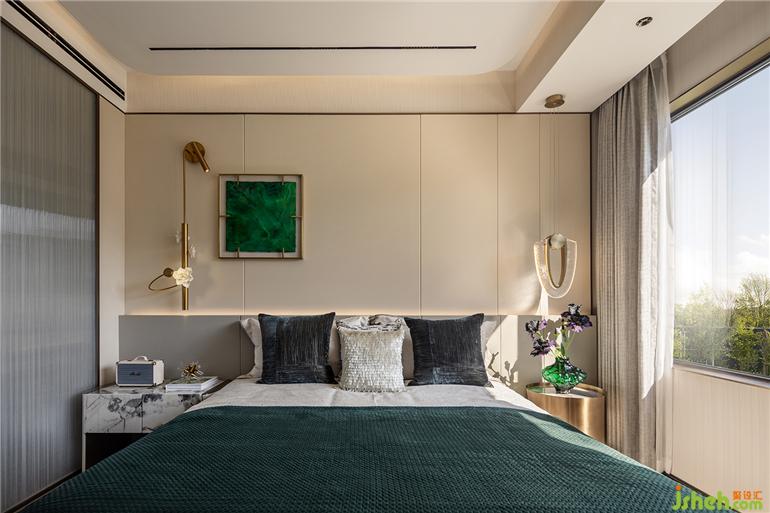 墨綠掛畫成為房間中最點(diǎn)睛的一筆,晨起拉開窗簾引自然的詩意入室,福州樣板間設(shè)計(jì)溫和日光讓空間更顯寬闊。