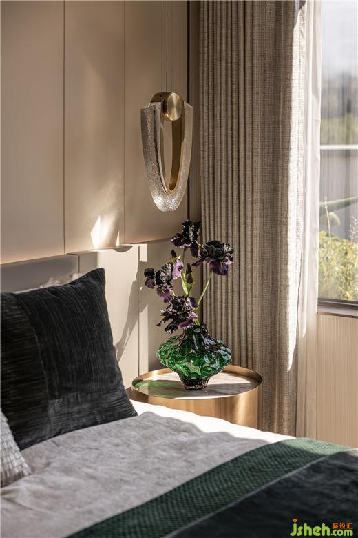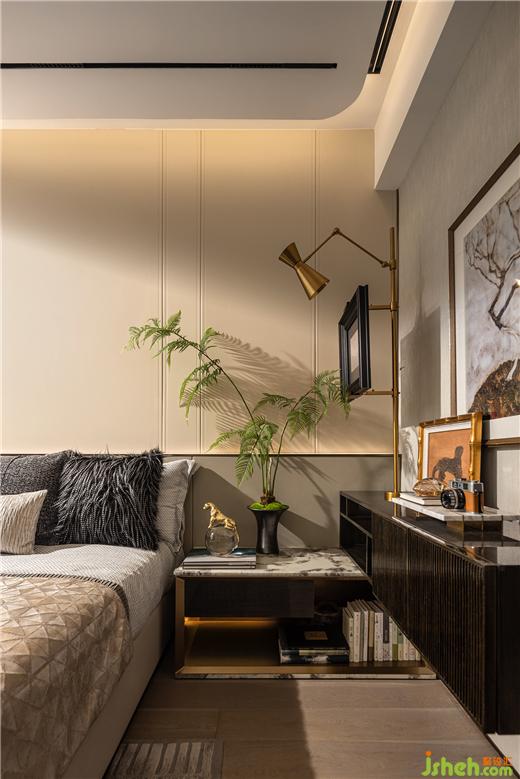 交由盆景的生長線條勾勒出空間的雅致,床頭柜的雙層設計容納每本愛書的收藏,福州樣板間設計閱讀可以成為睡前的習慣。