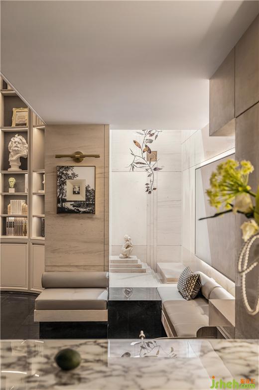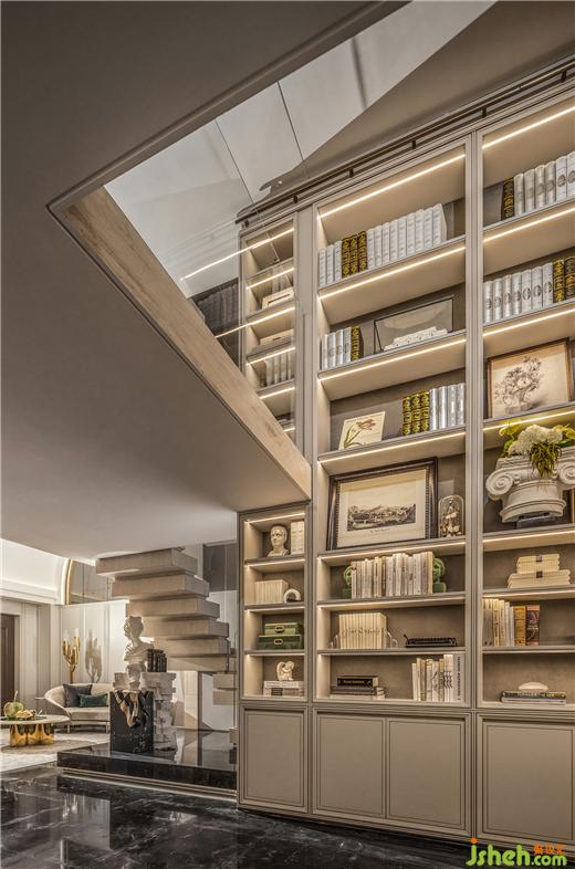 劇場感延伸到書房,抿一口美酒翻開書頁,疊墅設(shè)計(jì)得以全身心沉浸在詩句筑造的想象空間中。