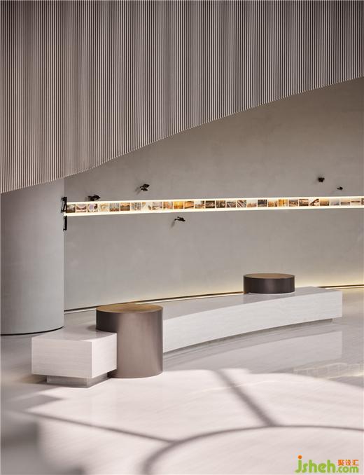 SNP通過環(huán)形坡道的設(shè)計賦予空間強烈的形式感,塑造神性的同時,能與其他空間產(chǎn)生強烈的關(guān)聯(lián)感,鄭州城市更新設(shè)計整個大空間以時間作軸線,搜集一座城的舊物、影像等素材開展藝術(shù)創(chuàng)作,讓時代之聲在回廊里傳響。