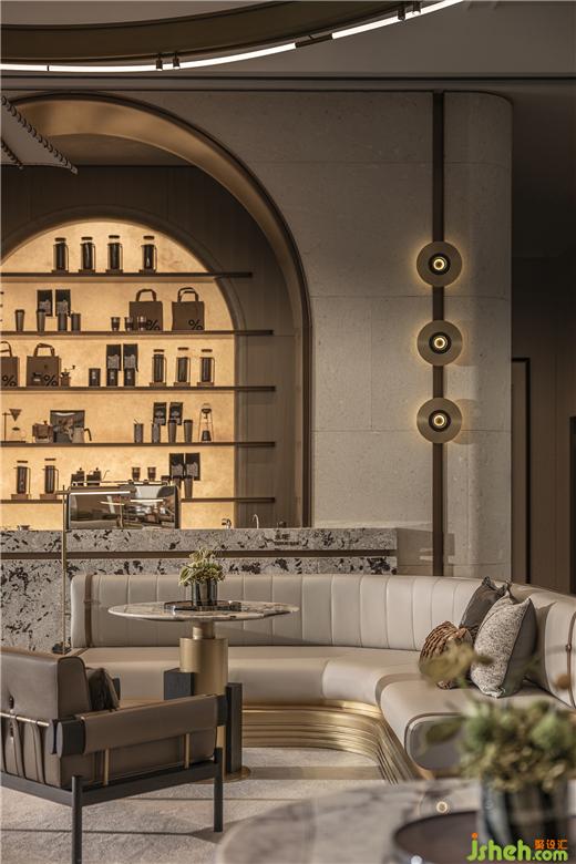 廣州保利錦上營銷中心設(shè)計空間以弧形元素為基調(diào),搭配溫潤的白色和極具質(zhì)感的金屬色,營造出“潤雨細無聲”的優(yōu)雅氣質(zhì)。