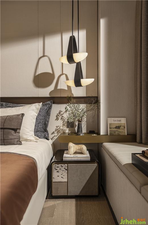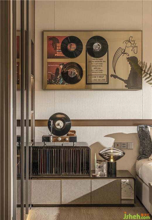 在流媒體音樂流行的當(dāng)下,對黑膠唱片的情有獨鐘,源于對音樂的敬畏與熱愛。廣州保利錦上樣板房設(shè)計臥室的角落設(shè)置雙層收納柜,收藏每一首來之不易的金曲,動聽的旋律詮釋浪漫與情懷。
