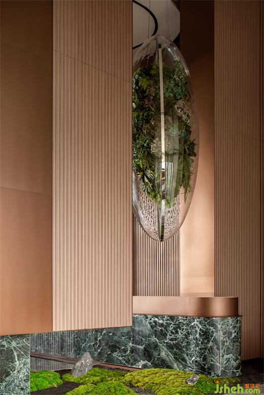 把對未來的期許、雀躍等等情緒注入設計之中,新居主義的空間里,翠綠在玻璃氣囊中蔓延,形成獨特而具未來感的生態(tài)景觀。