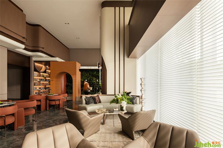 在共享公區(qū)里,開放通透的格局下拉近人與人之間的距離。沙發(fā)的弧度搭配柔軟的皮革帶來舒適的觸感,在這里開啟一場輕松的對話,令友鄰社區(qū)的關(guān)系織網(wǎng)更加密切。