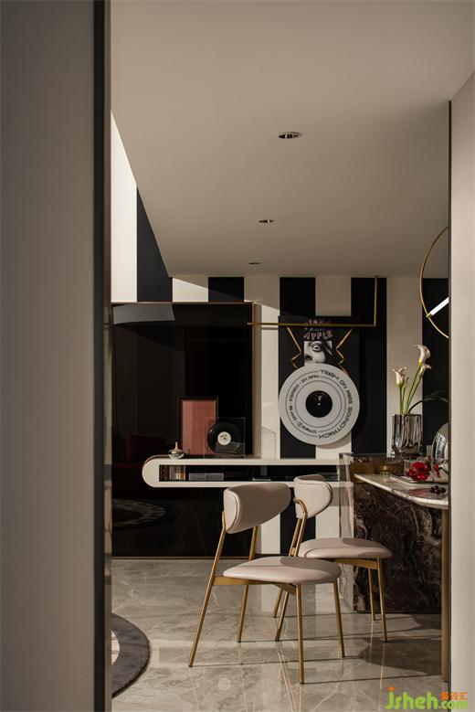 視覺的純粹享受,由沉穩(wěn)的米灰色與經(jīng)典黑紅主筆,公寓設(shè)計營造出空間的復(fù)古韻味。