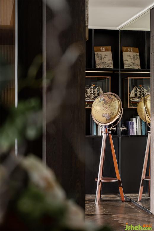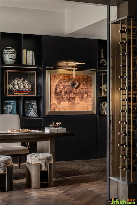“長(zhǎng)風(fēng)破浪會(huì)有時(shí),直掛云帆濟(jì)滄海”,整個(gè)家庭的世界觀、價(jià)值觀、人生觀容納在書房之中。精細(xì)化的收納設(shè)計(jì)使書籍、藏品、掛畫各居其所。