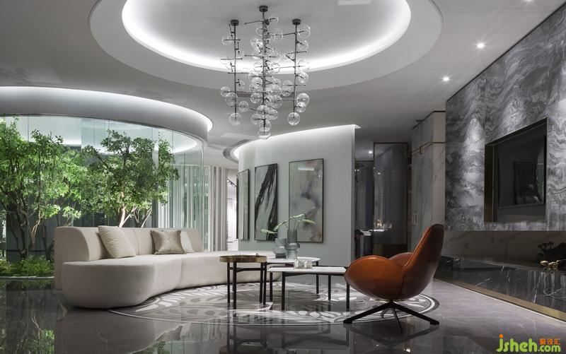 圓形地面與天花呼應(yīng),體現(xiàn)空間的張力與靈動(dòng),以森林姿態(tài)圍合空間,生動(dòng)的流線元素,增強(qiáng)了趣味,缺失的正方體塊的洞口,既暗示著每一個(gè)未知空間的開始,又使空間相互滲透,進(jìn)一步突出設(shè)計(jì)主題。