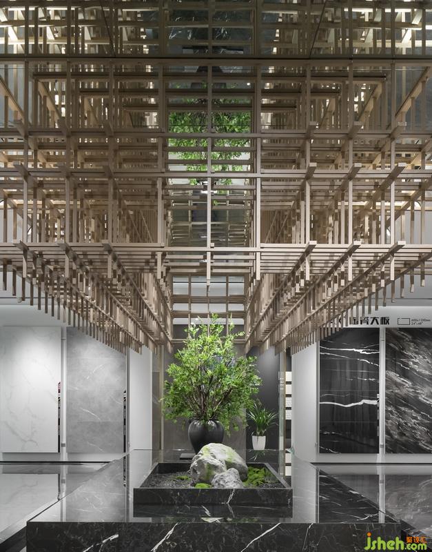 獨特的構(gòu)架式天花形成空間的視覺中心,原木長條縱橫交錯,無限而有序的排列,組成一個充滿張力的立體方陣,賦予空間一種獨特魅力。