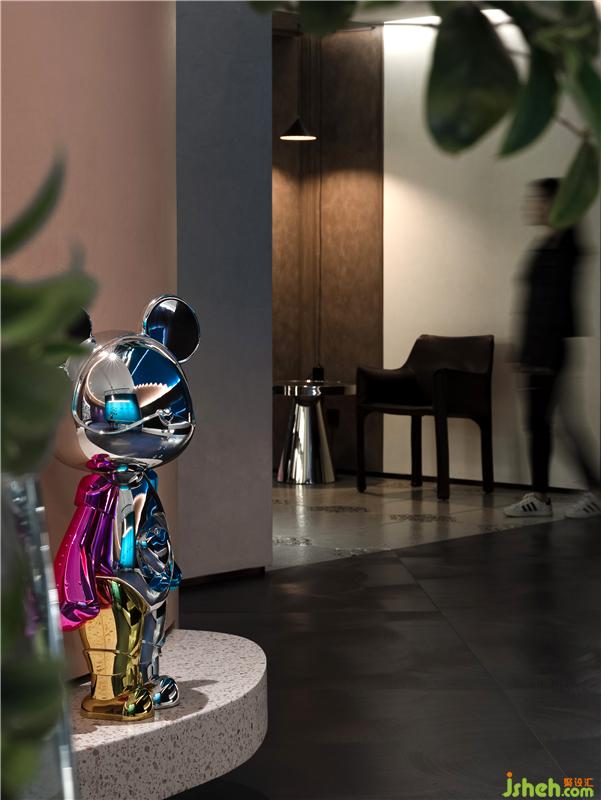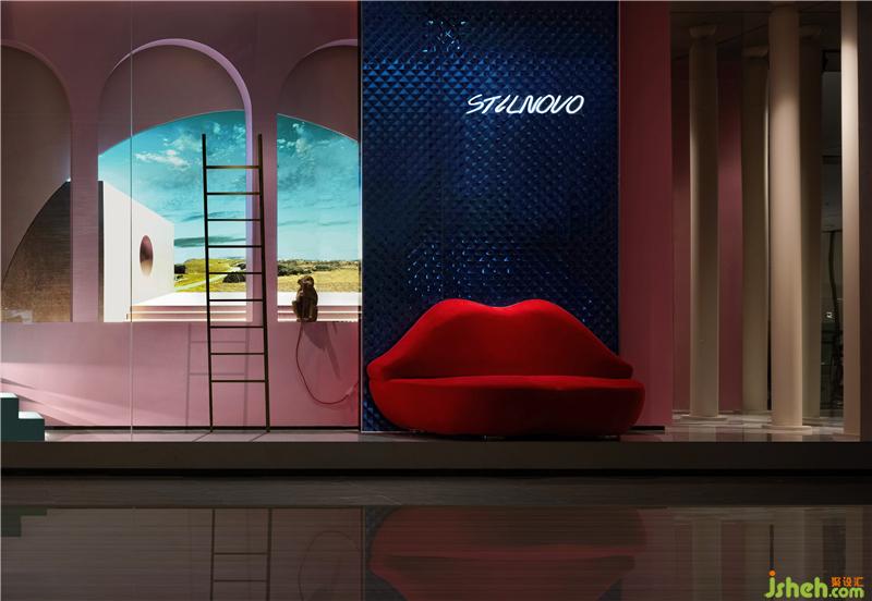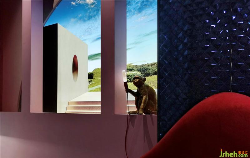 人人心目中都有一份對詩和遠(yuǎn)方的向往,設(shè)計師亦希望通過充滿浪漫和幻想的櫥窗空間激發(fā)觀者對于未來的期盼和探索欲,拱形窗戶引入唯美的自然景觀,將人們的思緒從室內(nèi)牽引到空曠的原野,極具夢幻色彩的涂料搭配上浪漫時尚的紅唇沙發(fā),仿佛是站在巴黎街頭,頑皮的小猴跳上窗臺,臺階上的可愛的暴力熊,又仿佛進入童話樂園,佛山展廳設(shè)計師希望通過故事般的敘事手法營造空間,極大的激發(fā)參觀者的好奇心,從而引導(dǎo)他們進去一窺究竟!
