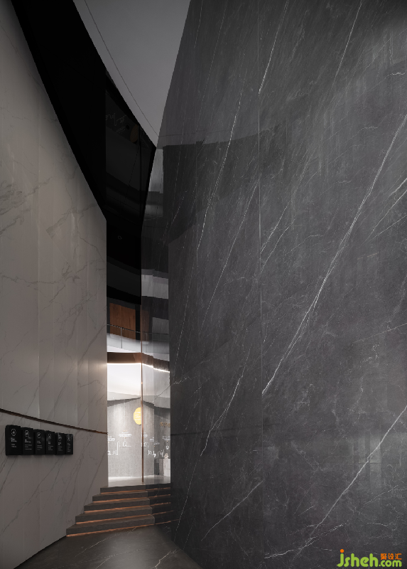 通過結(jié)構(gòu)、體塊的劃分與設(shè)計(jì),在室內(nèi)設(shè)計(jì)中創(chuàng)造“建筑感”,讓樓梯入口立面,形成有序遞進(jìn)的凹凸感,捕捉燈光下的陰影,運(yùn)用墻的端部,表現(xiàn)墻的厚度感等。