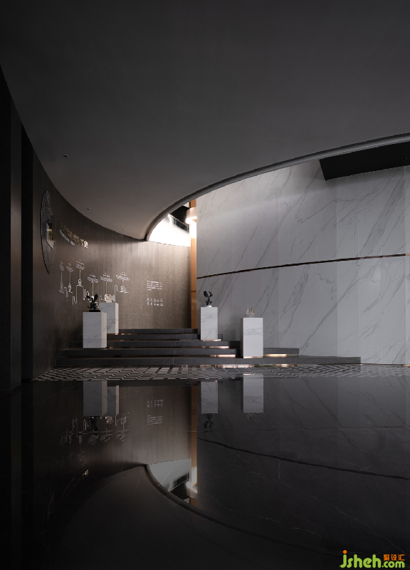 對(duì)于空間而言,光以亮度和陰影創(chuàng)造了物體的體量,而材料肌理的產(chǎn)生、表達(dá)、變化則依靠于同光線產(chǎn)生的共鳴:正是因?yàn)楣饩€的存在,才使得建筑的物質(zhì)性和形式感得以充分表達(dá),并且隨著光線融入到空間之中。對(duì)光線的理解不僅限于方向、強(qiáng)度和色彩,甚至把光當(dāng)成一種實(shí)體來對(duì)待佛山巖板展廳設(shè)計(jì)。