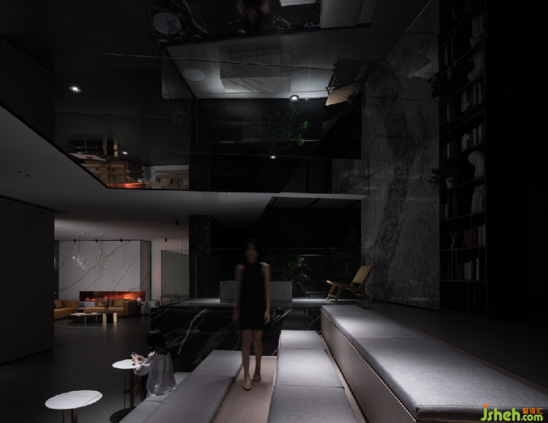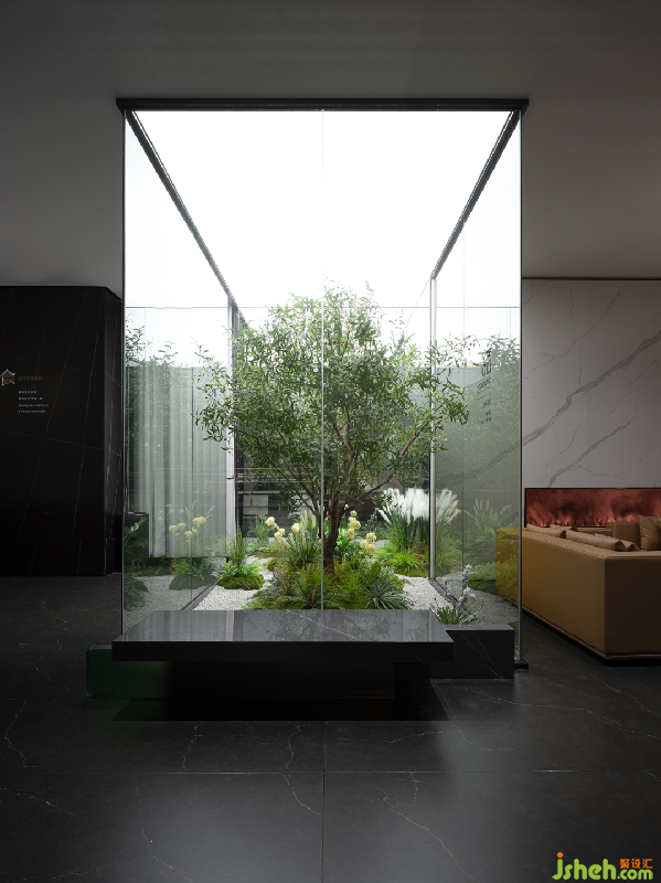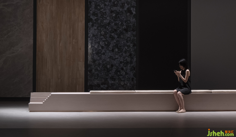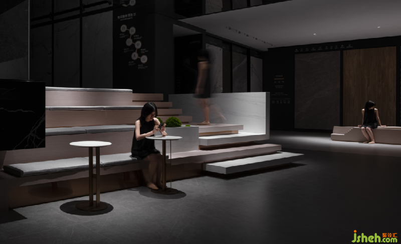 自然的色彩過渡將人們的視覺平移至室外的天然風(fēng)光,運用光線的變化,在質(zhì)樸中呈現(xiàn)出永恒和典雅。環(huán)顧空間整體布局,以半隔斷式的設(shè)計手法巧妙置景,傳遞更加開放、自由、溫潤的氛圍,隨著步入者的位置變換與視線流轉(zhuǎn),不同角落皆可自成一幅畫卷佛山巖板展廳設(shè)計。