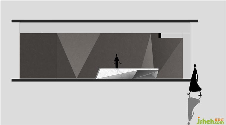 建筑大師高迪曾說過:“曲線屬于上帝,直線屬于人類?!蹦敲葱本€呢?它似乎屬于一種未被定義的形態(tài)。斜形的物體從物理學(xué)的角度來看具有多重性;既代表了極端的不穩(wěn)定性,比如意大利博洛尼亞的雙子斜塔以及比薩斜塔,也代表了極端的穩(wěn)定性,比如埃及金字塔。巖板展廳設(shè)計(jì)利用這種未被定義的斜線來構(gòu)建和分割空間,使空間具有一種獨(dú)特的場所精神!