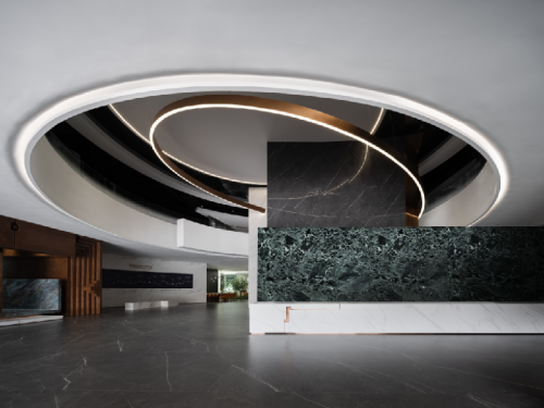 項目業(yè)主卡百利(Kabel)是一家專營藝術涂料的品牌。展廳的設計靈感源自藝術家的畫筆,任意流動的墻面造型猶如畫筆肆意涂抹出來的杰作,又仿佛是一個舞者在空間中旋轉的動作軌跡,每一道曲線都是一次創(chuàng)作的瞬間,總部展廳設計勾勒出了藝術家無窮的想象和創(chuàng)造力。