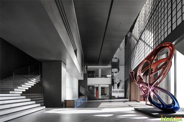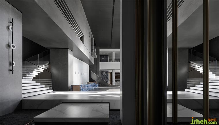 清晨,暖暖的陽光透過整面的方格玻璃窗,輕柔地灑落在大堂的每一個(gè)角落,勾勒出一種神秘而神圣的美感,光影彌漫在空間之中,散發(fā)著獨(dú)特的優(yōu)雅氛圍。中空通過兩層結(jié)構(gòu)造型,運(yùn)用幾何元素,瓷磚總部設(shè)計(jì)以方形體塊進(jìn)行穿插疊加,營造空間立體感的同時(shí),也使得產(chǎn)品精致感與空間藝術(shù)感相得益彰,以此形成獨(dú)特的品牌符號和性格IP.