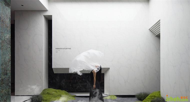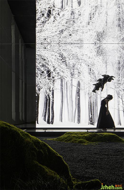 潔白的叢林、流動的霧氣、飄散的云霧,給空間增添些許神秘感,舞者猶如翩翩仙子,優(yōu)雅地轉(zhuǎn)身、旋轉(zhuǎn)、起舞,像飛舞的蝶,舞動著時尚的華彩。