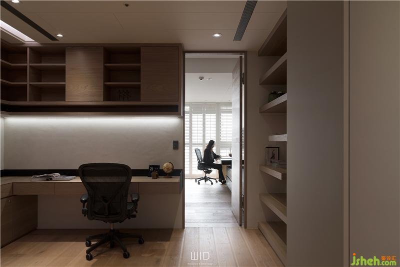 推開始用進口特殊緩沖五金的拉門,映入眼簾的是一臺白色電子琴,上段做為可以擺放樂譜、裝飾品的層板,讓居住者盡情的享受音符在空間中的流動,充分利用收納空間又不影響整體格局。