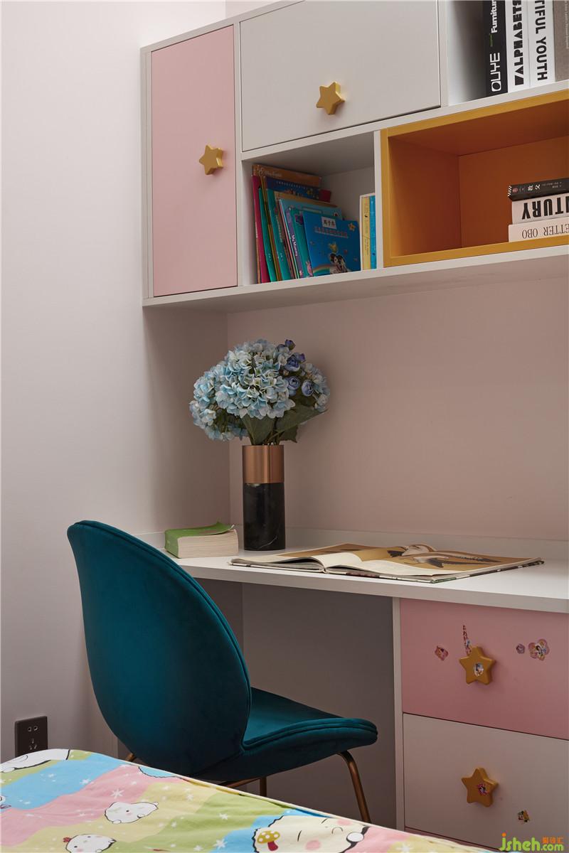 公主房從整體上追求粉嫩、歡快、活潑的氛圍,窗臺小景在燈光照射下透出一絲俏皮與靈氣。