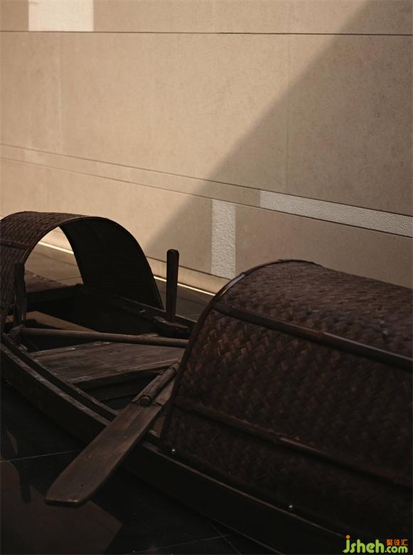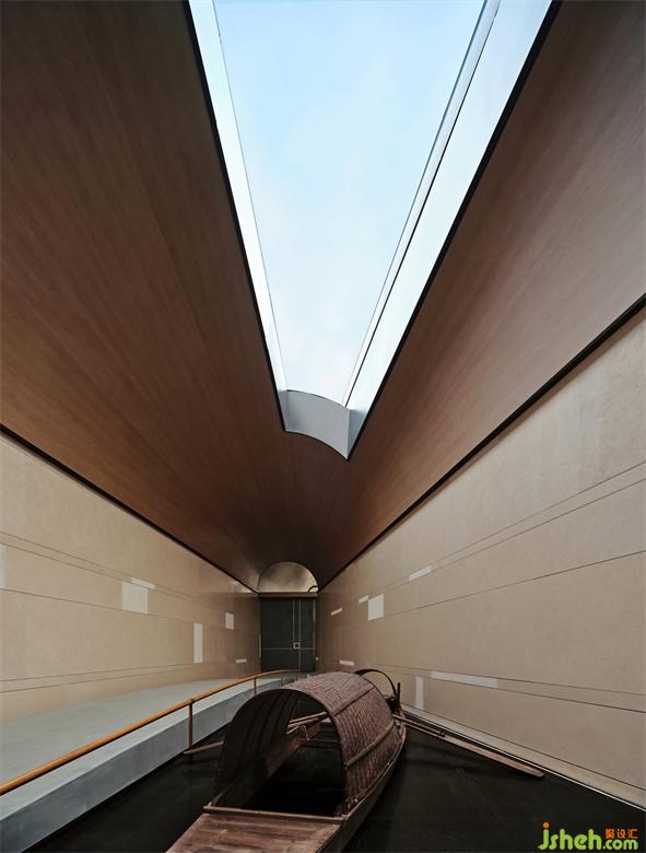 轉(zhuǎn)身入門,微微拱起的棧橋,一葉烏篷船停泊在側(cè)。晴天時的光線從穹頂?shù)奶齑皟A瀉而下,隨時間印刻在石板之上。