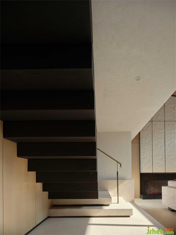 When the light falls on the main background wall above the fireplace, time is also imprinted. The stone sculpture wall and rice paper lamp, the hard and coarse grain and the soft and gentle materials are connected by the injected light, together creating a leisurely and comfortable place.