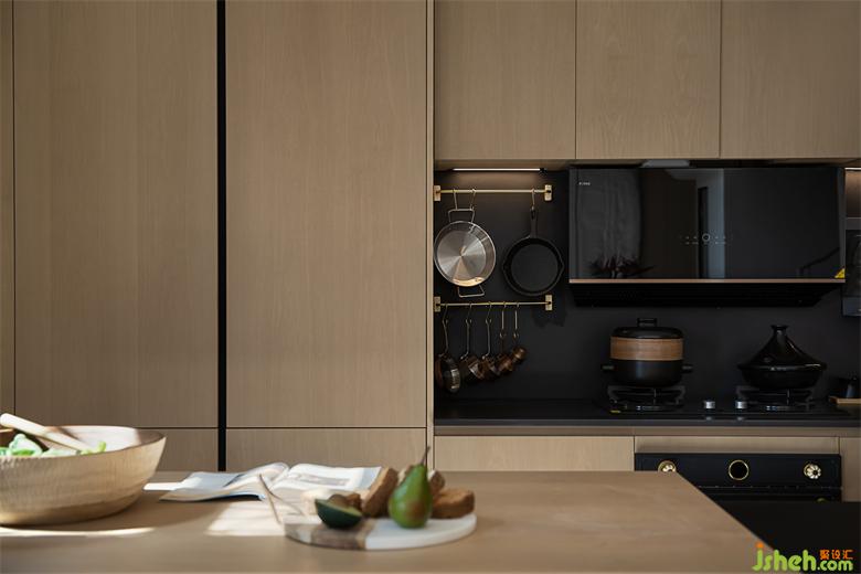 餐客廚一體的設(shè)計(jì),使廚房不再是單一獨(dú)立的封閉空間,而是結(jié)合島臺、餐桌,拓展成為交流分享、會客宴請的社交場地,萬科樣板房設(shè)計(jì)使空間擁有更多復(fù)合性與可能性。