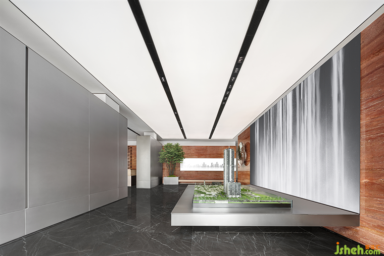 華潤售樓處設(shè)計極簡幾何線條排列組合成了接待臺,冷靜的大理石與溫潤的木質(zhì)組合而成,呈現(xiàn)出別致的詩性。