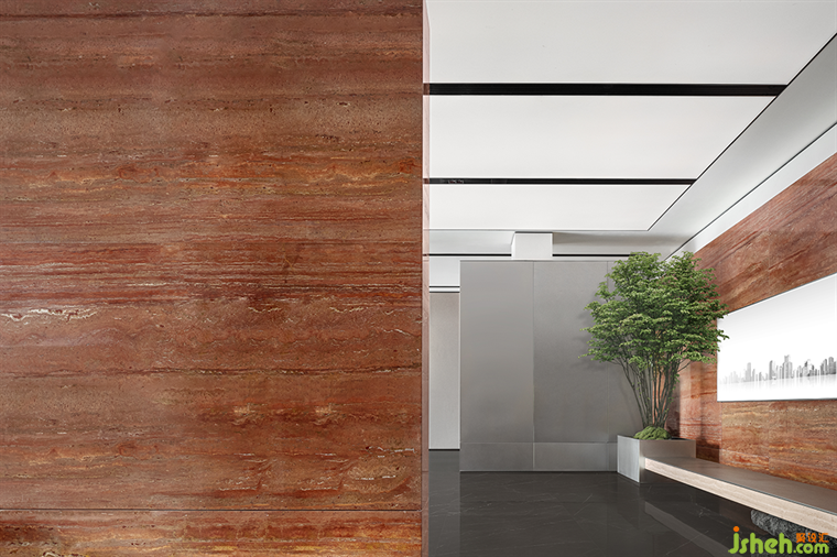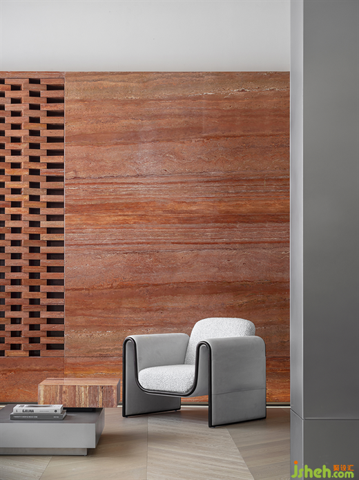 從感官角度出發(fā),延續(xù)了建筑的特性,以紅磚作為線索,貫穿于整個空間,連接接待區(qū)域,文化展示區(qū)及洽談區(qū),引領(lǐng)著觀者的動線。宛如拼圖游戲,回味無窮。紅磚樸素,卻也有讓人眼前一亮的時尚感,讓整個場域增添了返璞歸真的生機(jī)與活力。