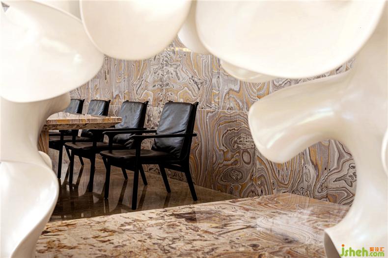 同時(shí)材質(zhì)和顏色上的微妙沖突,著重刻畫空間里的美學(xué)價(jià)值。