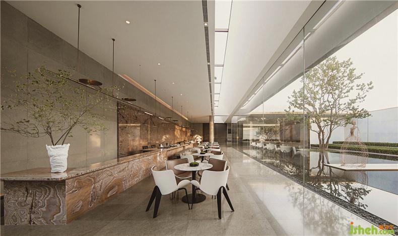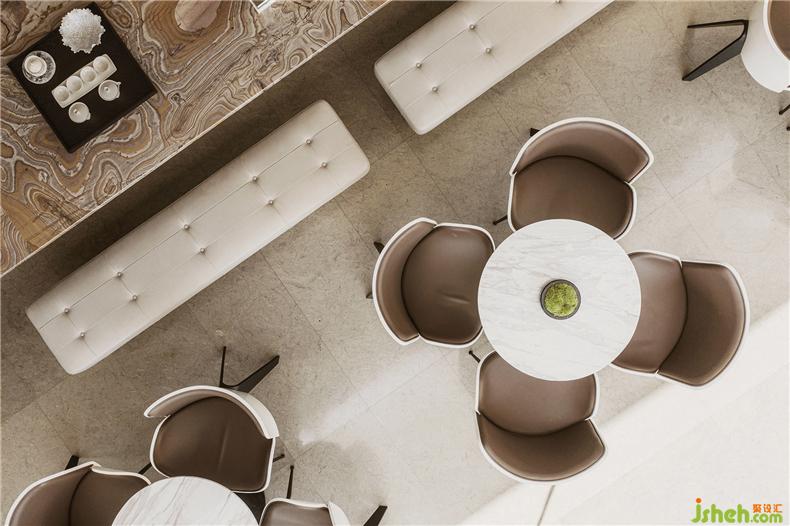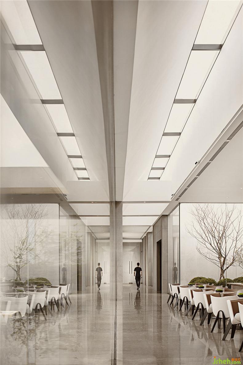 室內(nèi)便圍繞著“凹”字形的景觀延伸,是一種對景觀的呼應,同時讓時尚的主題更加完整。