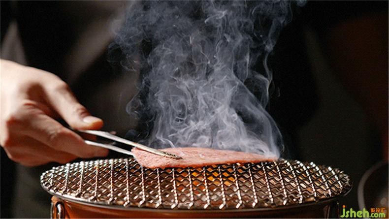 一塊漆黑的墻面銜接玻璃幕墻,沒有任何花俏的圖案或特殊的紋理裝飾,只有金銅色的店名提醒來訪者,火燒鋼板背后藏著整個(gè)美味和牛燒肉世界。