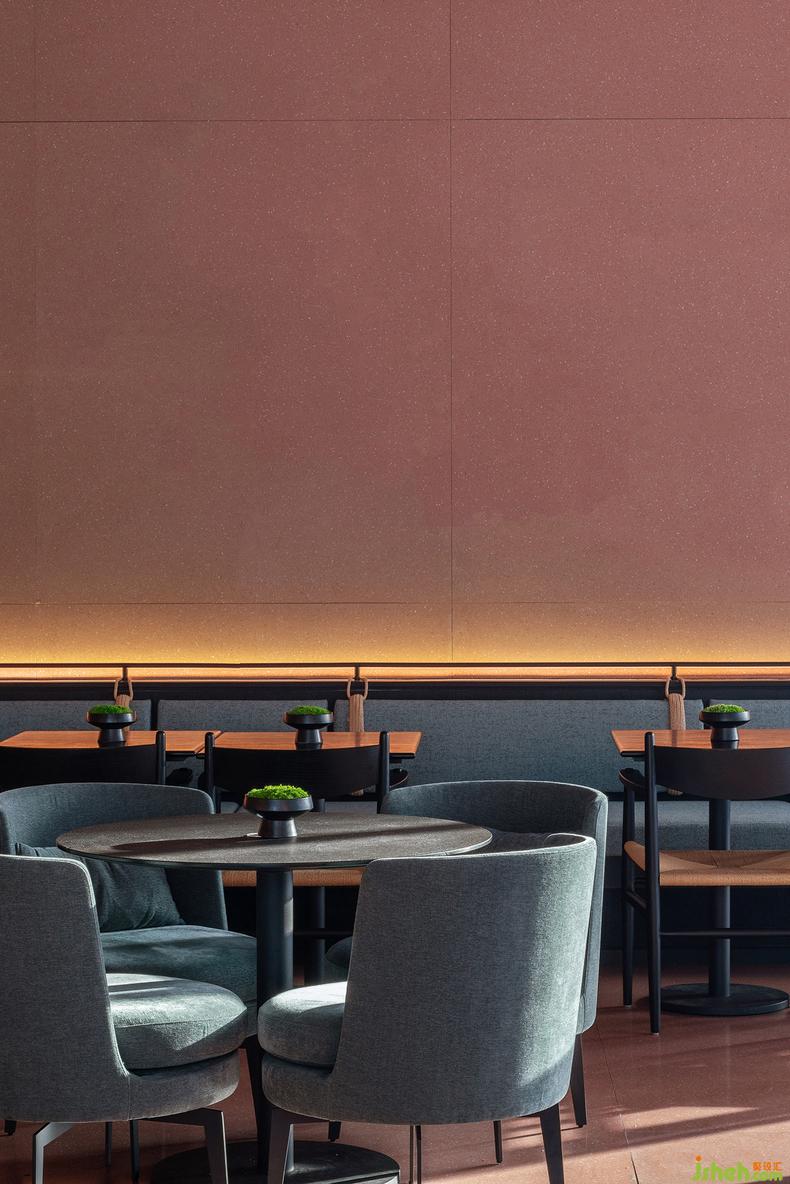 循規(guī)蹈矩的都市生活本就千篇一律,吃飯時間雖短暫卻成為日常重要的社交時間。為了讓日?;木筒统錆M舒適感和樂趣,空間里設置了多種就餐位置。一個人的吧臺座,二人卡座,四人乃至多人的聚集式座位,甚至戶外的花園空間,都能讓吃飯這件事變得無比放松,充滿更多種選擇。